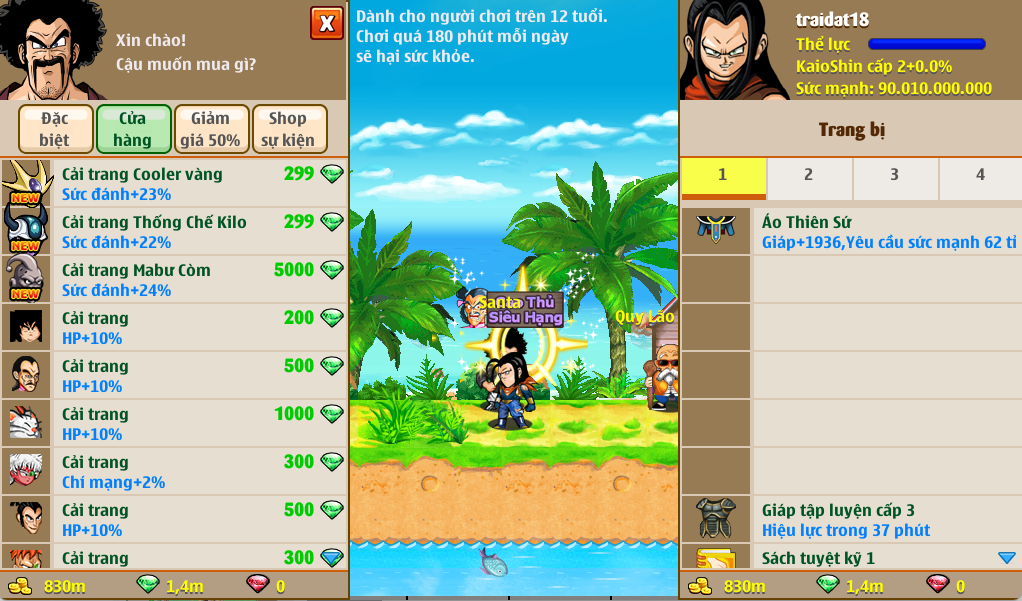 + Trong thế giới ngọc rồng có rất nhiều kẻ mạnh, bạn có thể chính minh sức mạnh của bạn tại Giải siêu hạng, với các đối thủ mạnh không kém
